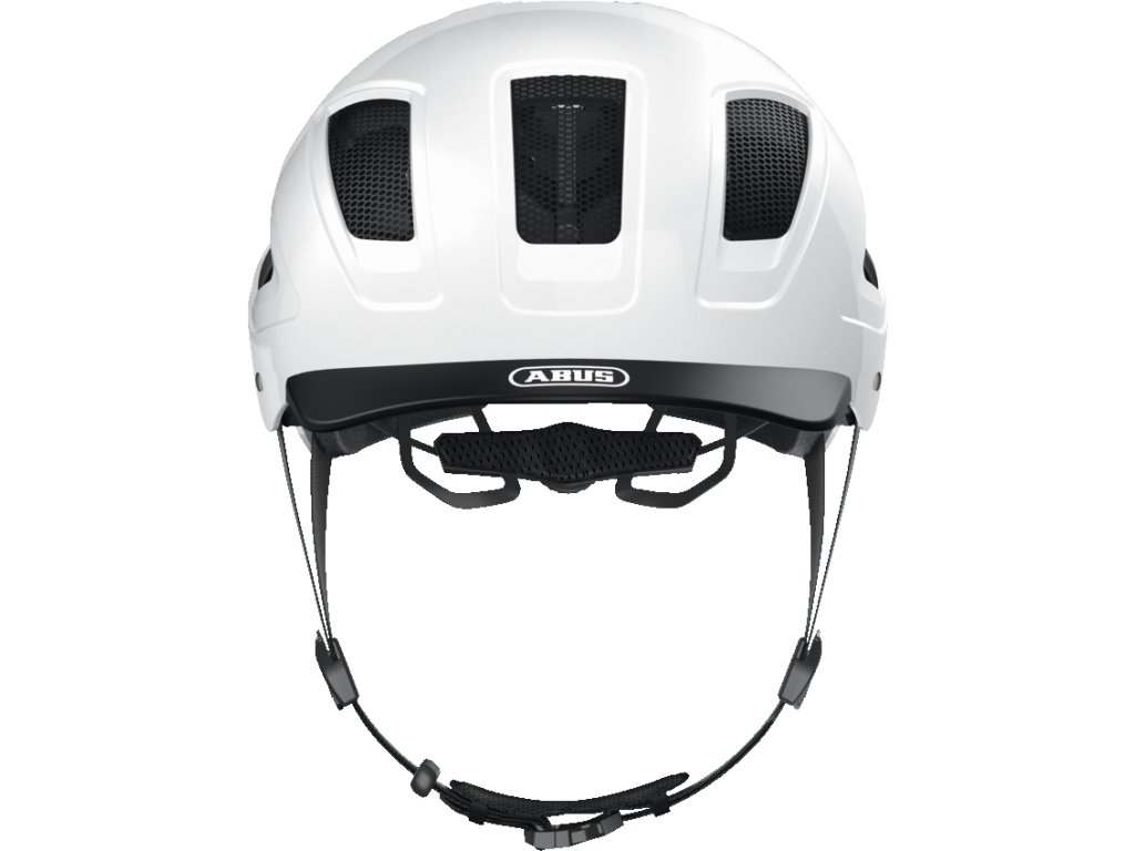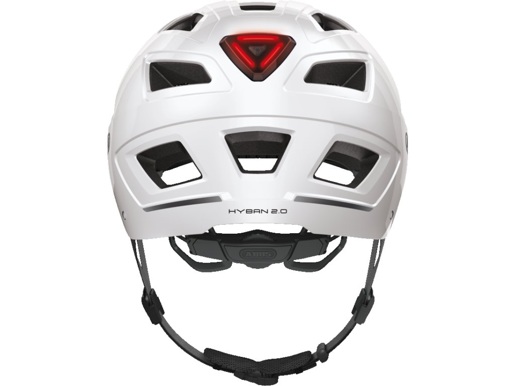 Wygodny i bezpieczny Kask rowerowy ABUS Hyban polar white rozmiar L Kask Abus Hyban jest odpowiedni zarówno dla rowerzystów, jak i do innych aktywności sportowych, takich jak jazda na rolkach lub skateboardzie. Elementy odblaskowe i tylne czerwone światło LED zwiększają bezpieczeństwo nawet przy ograniczonej widoczności. Kask jest bardzo dobrze wentylowany – duże otwory wentylacyjne zapewniają komfort nawet w cieplejsze dni, a zintegrowana siatka chroni przed owadami. Dyskretna osłona chroni oczy przed oślepiającym słońcem.Parametry dodatkowe