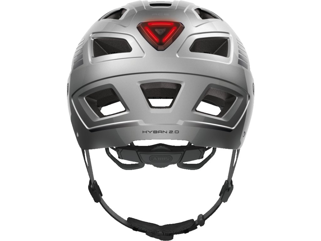 Wygodny i bezpieczny Kask rowerowy ABUS Hyban signal silver rozmiar L Kask Abus Hyban jest odpowiedni zarówno dla rowerzystów, jak i do innych aktywności sportowych, takich jak jazda na rolkach lub skateboardzie. Elementy odblaskowe i tylne czerwone światło LED zwiększają bezpieczeństwo nawet przy ograniczonej widoczności. Kask jest bardzo dobrze wentylowany – duże otwory wentylacyjne zapewniają komfort nawet w cieplejsze dni, a zintegrowana siatka chroni przed owadami. Dyskretna osłona chroni oczy przed oślepiającym słońcem.Parametry dodatkowe