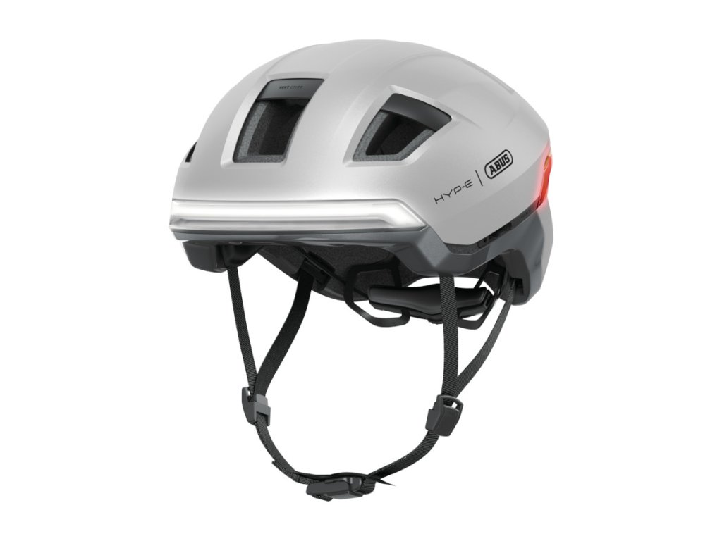 Abus Hyp-e gleam silver L – kask rowerowy z oświetleniem