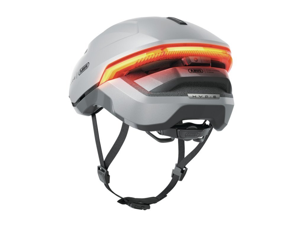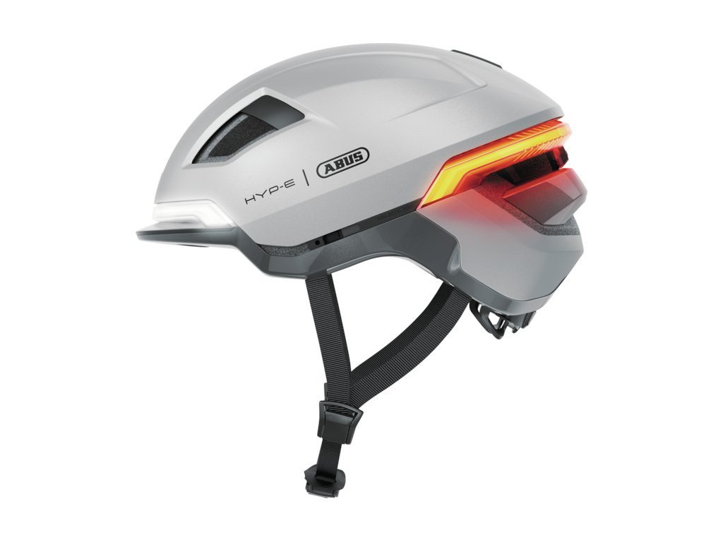 Abus Hyp-e gleam silver M – kask rowerowy z oświetleniem