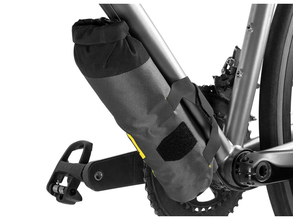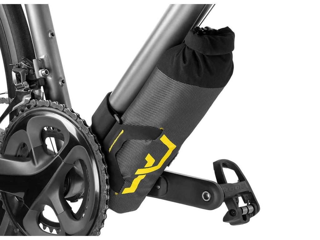 Torba Expedition Downtube Pack firmy Apidura pozwala przewozić dodatkową odzież, kilka akcesoriów lub butelkę z wodą bez przepełniania innych toreb. Jak sama nazwa wskazuje, mocuje się ją do dolnej rury ramy za pomocą mocnych pasków z rzepami. Zastosowane materiały gwarantują niezrównaną odporność na przetarcia i rozdarcia. Elementy odblaskowe pozwalają jeździć w całkowitym bezpieczeństwie. Torba ma pojemność wewnętrzną 1,2 litra i bez problemu pomieści litrową butelkę. Cechy: & nbsp; wyposażona w specjalną osłonę zabezpieczającą, która pasuje do wszystkich typów pojazdów: Mocowana do dolnej rury. Zamknięcie rolowane. Wzmocniona konstrukcja zapewniająca optymalną stabilność w każdym terenie. Wykonany z materiałów odpornych na ścieranie. Spawane szwy i wodoodporna konstrukcja. Producent nie zaleca zawieszania torby na rurach o średnicy mniejszej niż 30 mm, a także nie zaleca stosowania jej na tylnej konstrukcji i widelcu.Parametry dodatkowe