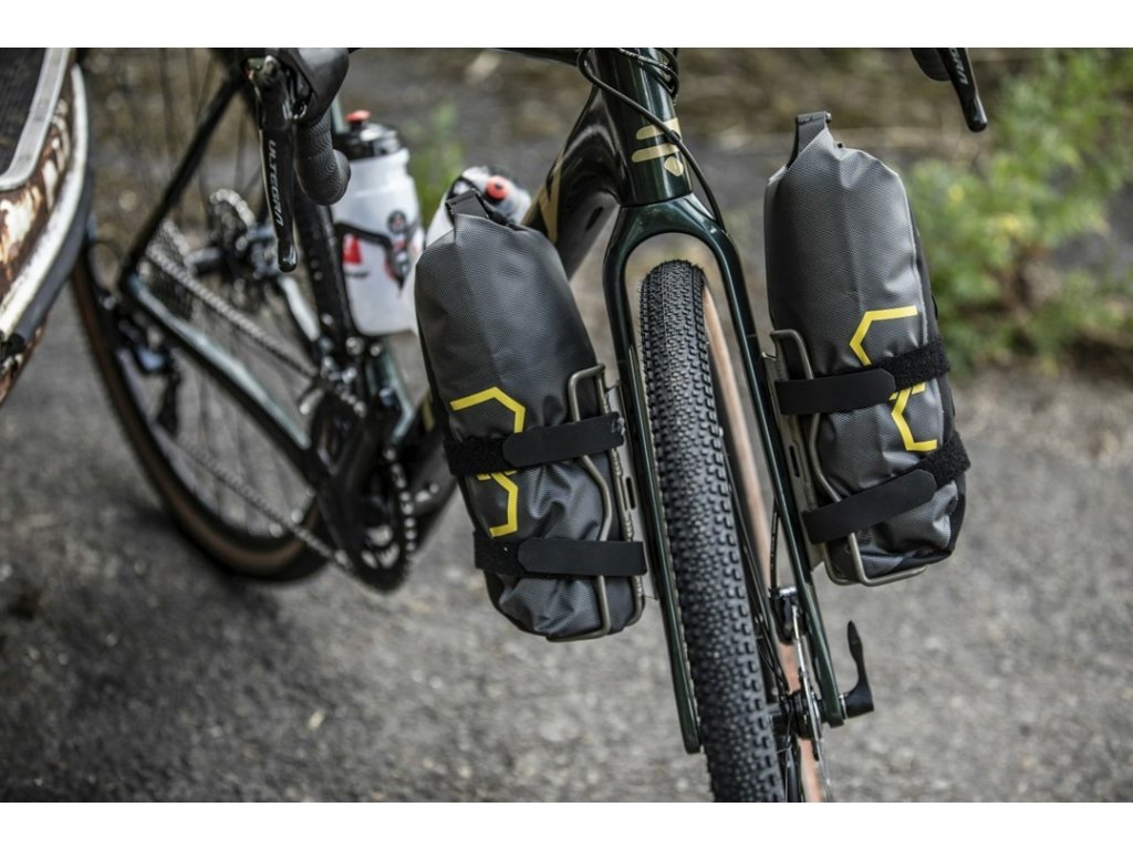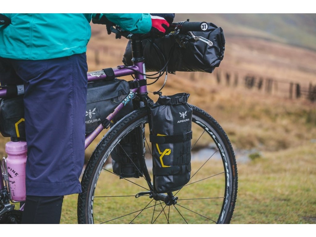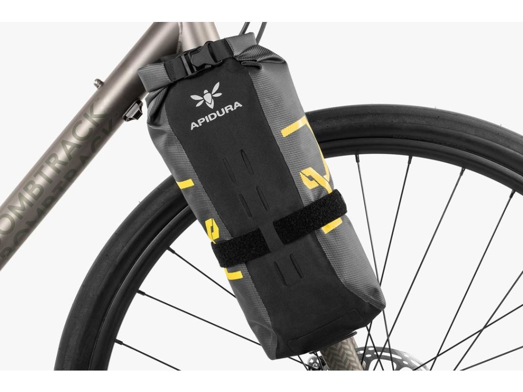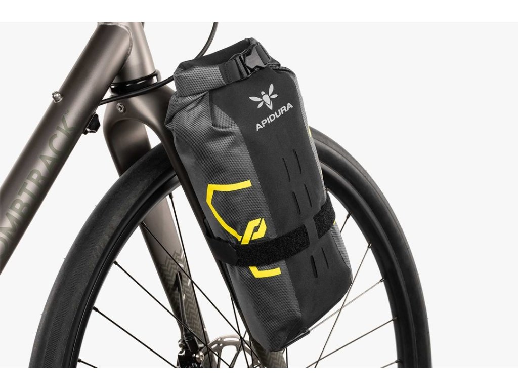 Expedition Fork Pack firmy Apidura to ultralekka, wodoodporna torba przeznaczona do zamocowania na widelcu roweru. Jest kompatybilna z każdym typem roweru, który ma możliwość zamocowania na widelcu. Torba ta jest idealna do przewożenia rzeczy, które można spakować, takich jak sprzęt do spania lub ubrania na zmianę, a także rzeczy zajmujących dużo miejsca, takich jak kuchenka, napoje lub żywność. Podobnie jak inne produkty z serii Apidura Expedition, torba ta jest wykonana z wysokiej jakości wielowarstwowego laminatu, który zapewnia wysoką odporność na uszkodzenia i wodę. Aby ułatwić pakowanie i usuwanie nadmiaru powietrza, torba jest wyposażona w bezdotykowy zawór, który ułatwia ściskanie zawartości. Torba mocowana jest do widelca za pomocą dwóch pasków z rzepem, które zapewniają stabilne i bezpieczne mocowanie. System ten umożliwia łatwe i mocne zamocowanie, które utrzymuje torbę stabilnie na miejscu podczas całej jazdy.Parametry dodatkowe