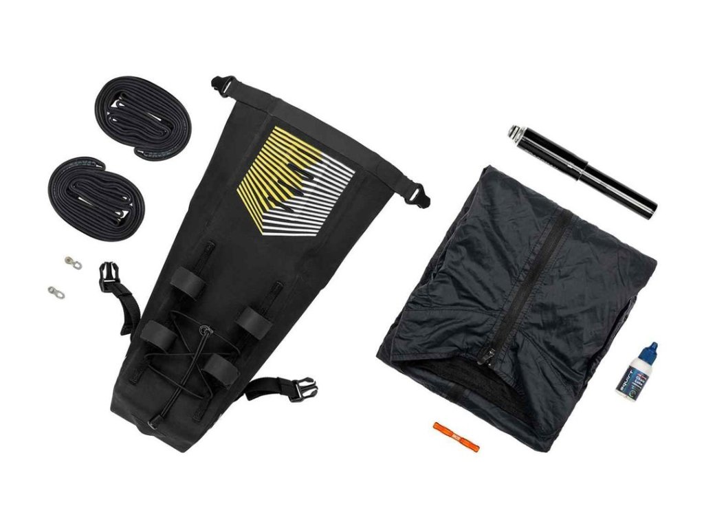 Ta torba została zaprojektowana na życzenie ultramaratończyków, którzy szukali efektywnego wykorzystania przestrzeni pod trapezem. Jest idealna do przechowywania mniejszego, łatwego do spakowania i lekkiego sprzętu. Ten minimalistyczny projekt oferuje jedną wewnętrzną przegrodę o pojemności 2,5 litra, idealną na podstawowy sprzęt. W górnej części znajduje się elastyczny sznurek do mocowania żywności lub odzieży, które chcesz mieć pod ręką podczas jazdy. Torba posiada wyjście na kabel z tyłu oraz oczko do zamocowania lampki błyskowej z przodu dla lepszej widoczności i bezpieczeństwa. Do produkcji tej torby użyto specjalnego laminatu Hexalon. Materiał ten jest bardzo lekki, ale jednocześnie bardzo wytrzymały. Torba jest całkowicie zgrzewana, co gwarantuje jej 100% wodoodporność, dzięki czemu Twój sprzęt pozostanie suchy nawet w niekorzystnych warunkach. Konserwacja: Myć ręcznie rozcieńczoną wodą z mydłem. Pozostawić do wyschnięcia na powietrzu. Nie prać w pralce, nie suszyć w suszarce ani nie prasować.Parametry dodatkowe