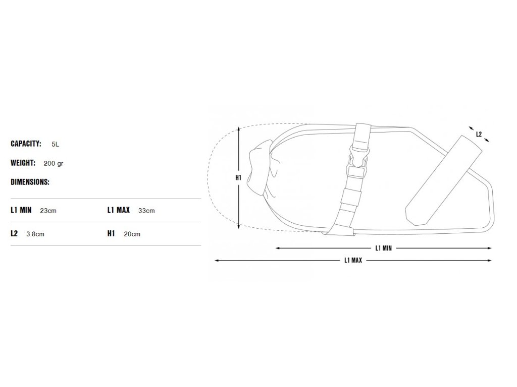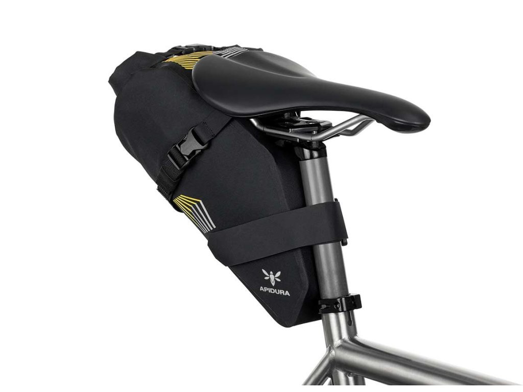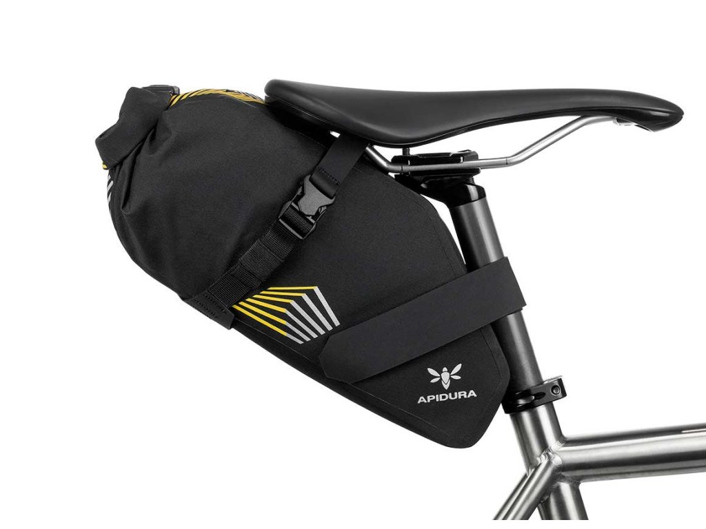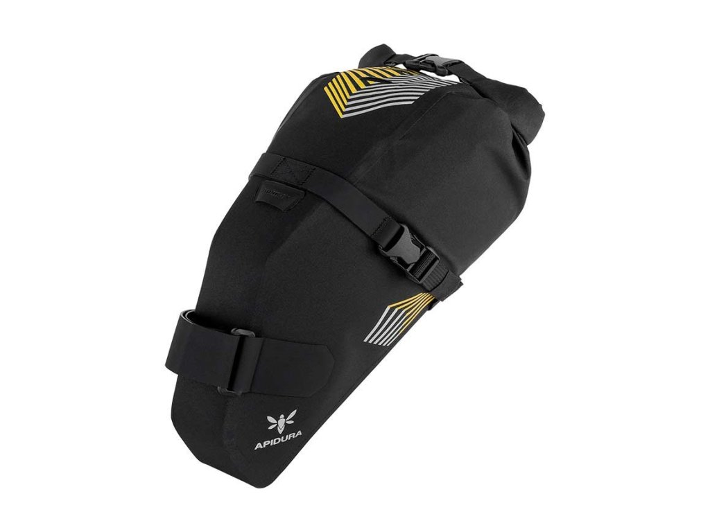 Racing Saddle Pack to pierwsza torba podsiodłowa zaprojektowana specjalnie do użytku wyścigowego na trasach ultramaratonów. Dzięki zastosowaniu ultralekkiego materiału i przemyślanej konstrukcji waży tylko 200 gramów. Mocowanie pod siodełkiem zapewnia sprawdzony system trzypunktowy, który gwarantuje, że torba pozostaje na swoim miejscu podczas jazdy, minimalizując ruchy. Aby zwiększyć bezpieczeństwo, torba jest wyposażona w uchwyt na latarkę i odblaskowe grafiki. Jest wykonana z Hexalonu, specjalnego laminatu opracowanego przez firmę Apidura, który jest wodoodporny, wytrzymały i lekki. Podobnie jak w przypadku innych produktów Apidura, miejsca styku torby z rowerem są wzmocnione wysoce wytrzymałym materiałem Hypalon. KOMPATYBILNOŚĆParametry dodatkowe