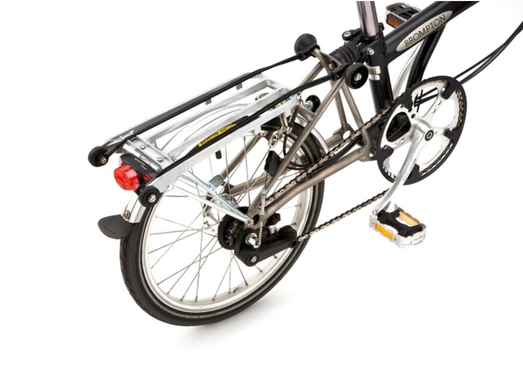 Oryginalne akcesoria Brompton Trochę skladačka Tylny bagażnik można zamontować tylko w zestawie z tylnym błotnikiem. Bagażnik nie przeszkadza w złożeniu roweru. Ze względu na niską wysokość 16-calowych opon nie zaleca się montowania na bagażniku standardowych dwukołowych toreb. Podczas pedałowania przeszkadzają one i mogą ocierać się o ziemię. Bagażnik nadaje się tylko do toreb, które można umieścić na górnej części bagażnika. Bagażnik jest kompatybilny tylko z rowerami marki Brompton.Parametry dodatkowe