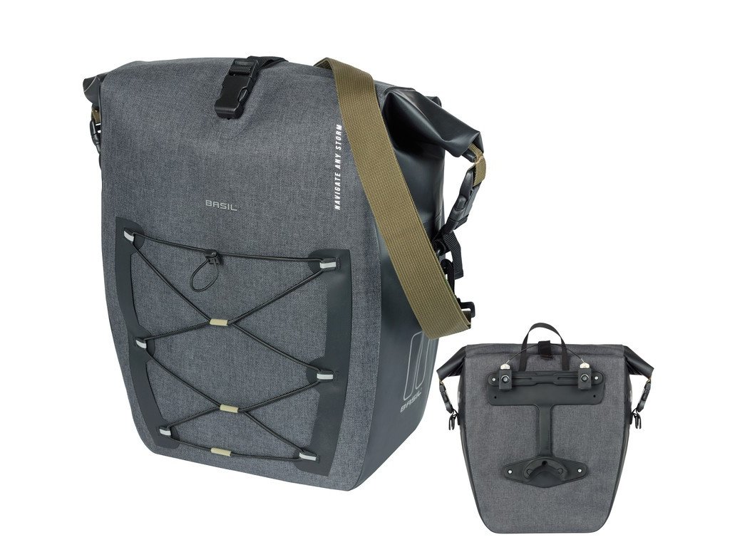 Torba Basil Navigator Storm MIK SIDE L to sportowa i praktyczna torba rowerowa, idealna na każdą przygodę. Jest wykonana z wodoodpornego materiału (IPX3), ma rolowane zamknięcie, miejsce na kask i odblaskowe logo zapewniające bezpieczeństwo w ciemności. Dzięki systemowi MIK SIDE torbę można łatwo zamocować lub wymienić na bagażniku, dodać kolejne torby z boku, a wszystko pozostaje stabilne bez uszkodzenia bagażnika. Niezbędny adapter ramowy MIK można dokupić osobno. Cechy: Wodoodporność (IPX3) Rolowane zamknięcie Kompresyjna torba z przodu Do bocznych punktów mocowania bagażnika MIK lub adaptera bocznego ramy MIK Odblask Pojemność 25–31 litrów W zestawie MIK StudsParametry dodatkowe