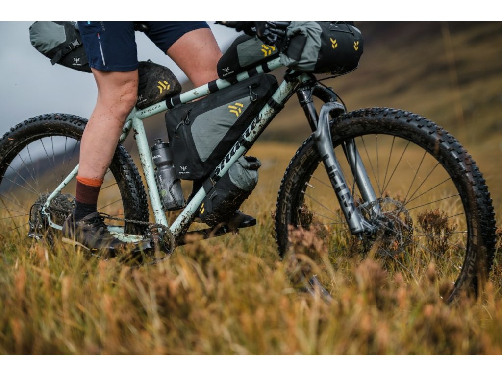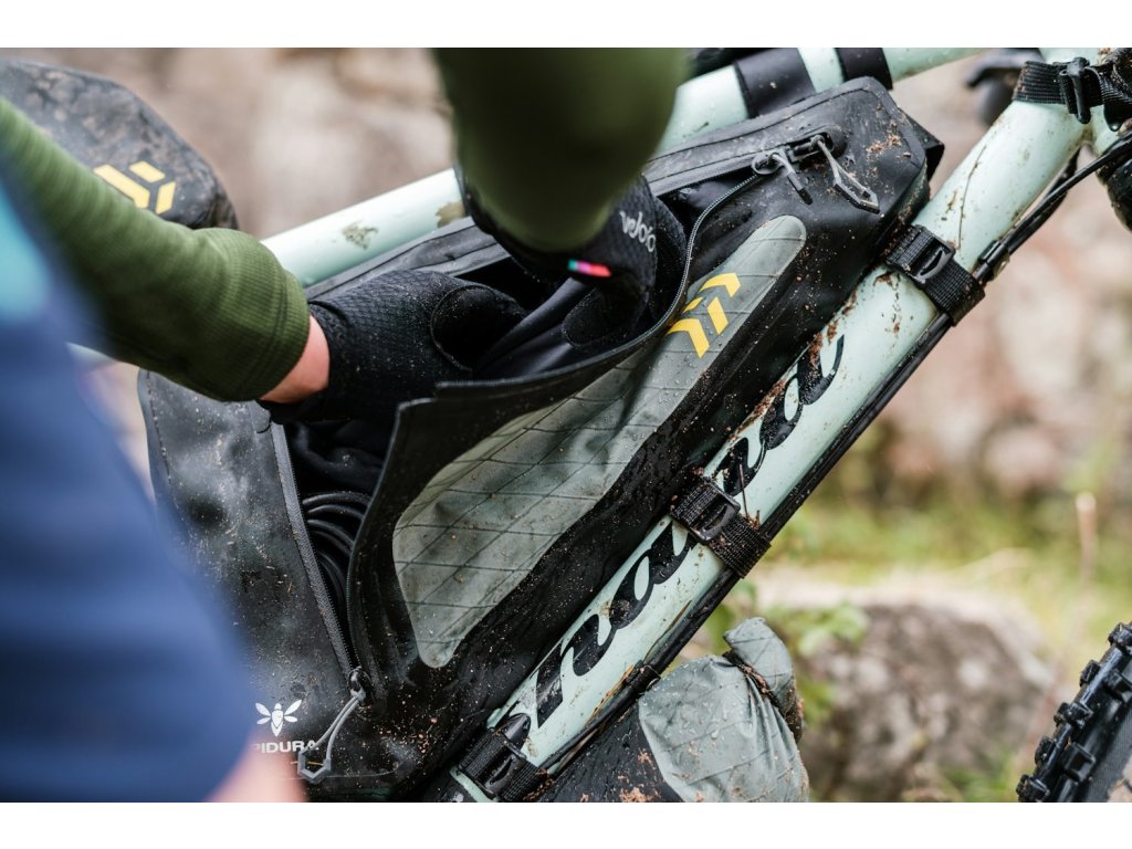 Plecak Backcountry Full Frame Pack jest przeznaczony do przenoszenia ciężkich i obszernych ładunków podczas długich wycieczek i w trudnym terenie. Ten plecak wypełnia całą ramę roweru i zapewnia wystarczająco dużo miejsca do przechowywania większych i cięższych przedmiotów, takich jak sprzęt do gotowania, namiot, cięższe narzędzia lub worek na wodę. Nie ogranicza ruchów nóg ani kontroli nad rowerem, co ma kluczowe znaczenie dla komfortu jazdy. Plecak jest wyposażony w dwa zamki błyskawiczne, które zapewniają szybki i łatwy dostęp do przechowywanych przedmiotów, oraz wewnętrzne paski do bezpiecznego przechowywania ładunku i organizacji; Torba Backcountry Full Frame Pack jest wykonana z wysokiej jakości czterowarstwowej laminowanej tkaniny Dimension-Polyant VX21, która została pierwotnie opracowana dla przemysłu morskiego. Materiał ten znany jest ze swojej wysokiej wytrzymałości i wodoodporności, dzięki czemu idealnie nadaje się do jazdy terenowej na rowerze. Torba jest bardzo lekka, ale jednocześnie niezwykle wytrzymała, co gwarantuje jej długą żywotność nawet w trudnych warunkach. Dzięki zgrzewanym szwom zamiast szytych torba jest całkowicie wodoodporna, chroniąc Twój sprzęt przed deszczem i wilgocią. Konserwacja: Myć ręcznie rozcieńczoną wodą z mydłem. Pozostawić do wyschnięcia na powietrzu. Nie prać w pralce, nie suszyć w suszarce ani nie prasować.Parametry dodatkowe