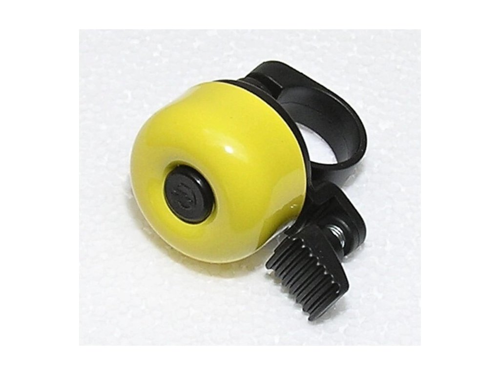 Mały dzwonek rowerowy Dzwonek w kolorze żółtym pasuje praktycznie do każdego roweru, na którym doskonale spełnia swoją funkcję. Dzwonek jest wytrzymały dzięki aluminiowej konstrukcji.Parametry dodatkowe