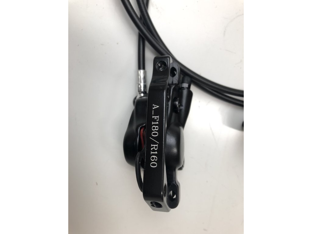 Ten przedni i tylny zestaw hamulcowy jest przeznaczony do rowerów elektrycznych dzięki wbudowanemu przełącznikowi z kontaktem stykowym. Mikroprzełącznik zapewnia odłączenie silnika po naciśnięciu dźwigni hamulca. Zestaw jest naprężony, gotowy do montażu. Długość tylnej części 180 cm, długość przedniej części 100 cm. Produkt nie zawiera tarcz hamulcowych. Zawiera tylko to, co widoczne na zdjęciu.Parametry dodatkowe