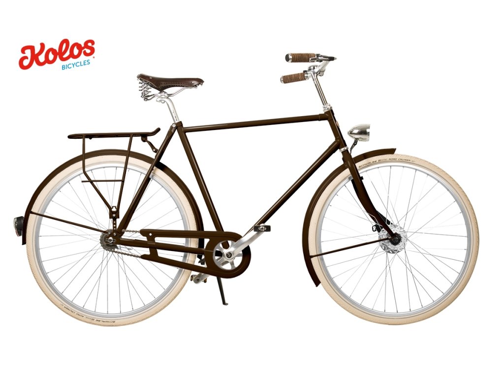 To jest świat mężczyzn Męski rower miejski Kolos No2 w stylu retro z skórzanymi dodatkami, siedmioma biegami i dynamem w piaście Rowery Kolos są produkowane w Czechach i wykorzystują sprawdzoną technologię klasycznych rowerów oraz nowoczesne komponenty światowych producentów, takich jak Shimano, Humpert, Schwalbe i inni. Kolos oferuje ponadto możliwość produkcji na zamówienie zarówno dla odwiedzających nasze sklepy, jak i klientów z bardziej odległych krajów poprzez zamówienia online w konfiguratorze rowerów Kolos. Możesz wybierać spośród szerokiej gamy parametrów, od koloru, przez bagażnik i błotniki, po rodzaj hamulców, liczbę biegów, rodzaj siodełka, oświetlenie itp. W tej konfiguracji oferujemy sprawdzony rower miejski z ramą 58 cm, siedmiobiegową przerzutką Shimano Nexus, błotnikami, tylnym bagażnikiem, oświetleniem napędzanym piastami oraz ekskluzywnym skórzanym siodełkiem Brooks B67 i dopasowanymi ergonomicznymi skórzanymi uchwytami Ergotec. Jest to więc naprawdę luksusowa wersja tego roweru, która nadaje się do bardziej pagórkowatych terenów. Jeśli masz inne wyobrażenie, nasz konfigurator oferuje wiele parametrów, dzięki czemu możesz stworzyć rower według własnego gustu i złożyć zamówienie na stronie internetowej kolosbikes. Po skonfigurowaniu rower zostanie wyprodukowany specjalnie dla Ciebie. Produkcja trwa około 2-3 tygodni.Parametry dodatkowe