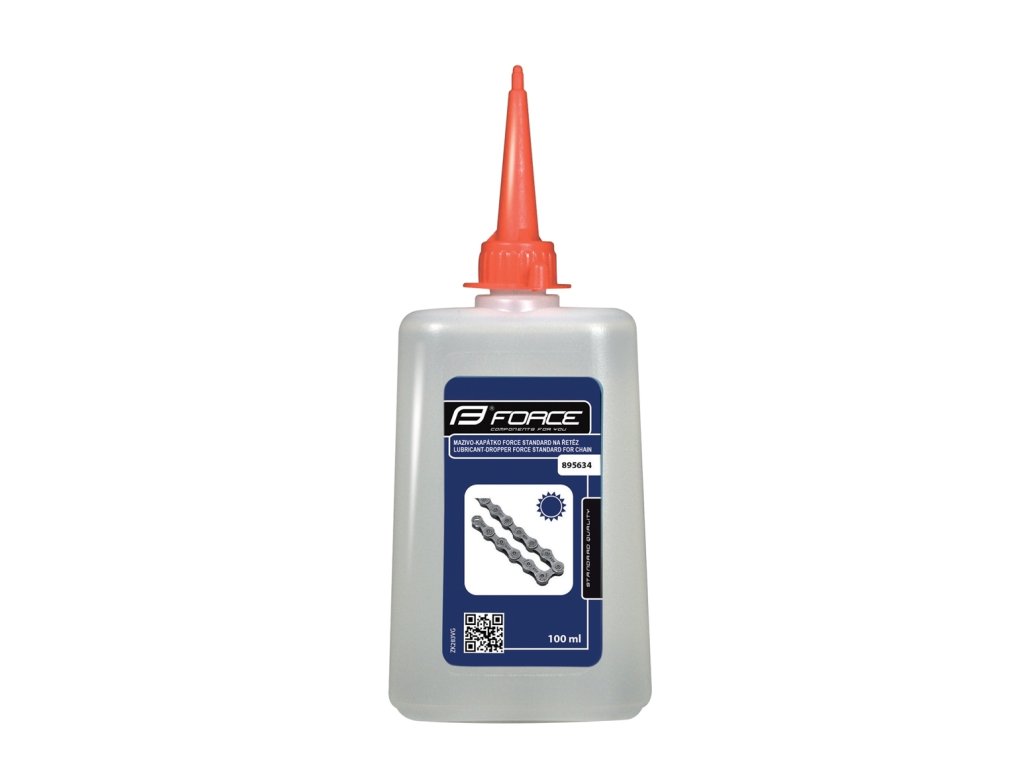 Olej do łańcuchów FORCE STANDARD to smar odpowiedni do dobrych warunków pogodowych i warunków, które nie są ekstremalne (deszcz, błoto itp.) zalecany do jazdy wyścigowej i wyczynowej bardzo dobra penetracja w obszarach łańcucha wypiera wilgoć, smaruje łańcuch i chroni przed korozją nadaje się również do łańcuchów z pierścieniem O-ring, do rowerów szosowych i górskich sprzedawany i pakowany w butelkę 100 ml z zakraplaczemParametry dodatkowe