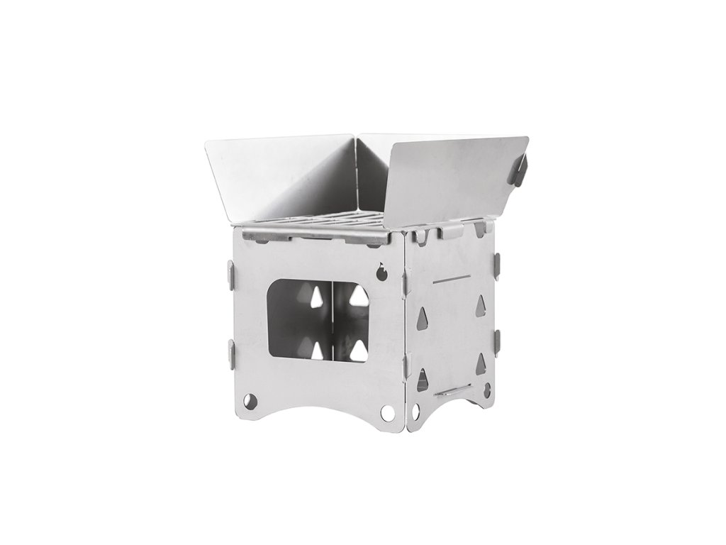 Składana kuchenka na drewno idealna do użycia z garnkiem lub czajnikiem, ale można na niej również grillować. Do grilla można przymocować trzy osłony przeciwwiatrowe, które zapobiegają staczaniu się potraw. Kuchenka może być używana z pałeczkami i kostkami spirytusu, dno można ustawić na dwóch wysokościach. Po użyciu cały kuchenka można złożyć na płasko do solidnego tekstylnego pokrowca. W filmie prezentacyjnym na naszym kanale YouTube kuchenka została zaprezentowana wraz z akcesoriami, które nie są już częścią produktu. Obecnie opakowanie nie zawiera szpikulców i igieł do szaszłyków.Parametry dodatkowe