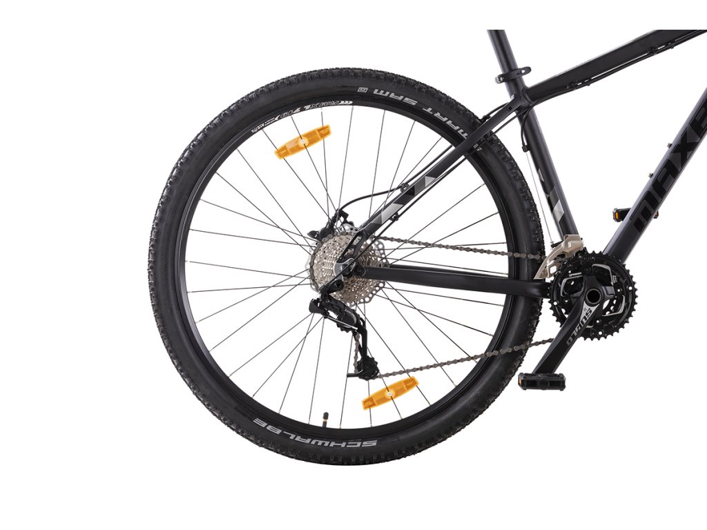 Opis MTB 29" MAXBIKE Taal 17" czarny matowo-szary: Komponenty S-ride M300 3x9 hydrauliczne Materiał: aluminium Al6061 Prowadzenie: tylko tarczowe IS Średnica sztycy: 31,6 mm Średnica obejmy siodełka: 34,9 mm Głowica: półzintegrowana 44 mm Wymienna końcówka: tak Widelec 29: Suntour XCM HLO NECO H148 semi. Remerx Dragon/ 9 mm R.O. Opony 29 Schwalbe Smart Sam 54-622 Akcesoria Maxbike ATB Uchwyty VELO-975 Siodło DDK MTB Przerzutka S-ride M300 3x9 Hamulce Zoom HB-875 Zoom HS1 160 mm tarcze Korby Prowheel SUOLO 901 3x9 175 mm Shimano UN300 123 mm oś środkowa Pedały Feimin FP-872 Przerzutka S-ride M300 9-rzędowa Przerzutka przednia S-ride FD-M300 Kaseta/multiprzekładnia S-ride CS-M300 11-32 9-rzędowa Łańcuch KMX X9Parametry dodatkowe