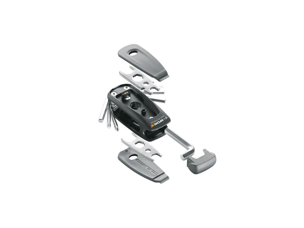 Wielofunkcyjne narzędzia rowerowe SKS są wysokiej jakości i praktyczne Wyposażenie każdego odpowiedzialnego rowerzysty w podróży. Pomimo niewielkich rozmiarów (9,5 x 4 cm) zapewnia dużą liczbę wysokiej jakości kluczy i innych narzędzi do awaryjnych napraw rowerów w terenie. Zestaw narzędzi SKS T-Worx zawiera: 6 x klucze imbusowe (2,5/3/4/5/6/8) Torx T 25 śrubokręt krzyżakowy klucze boczne (8/10/13/15) klucze oczkowe (6/11/12) Klucze do piasty (14/15) Dźwignie montażowe do wymiany dętkiParametry dodatkowe