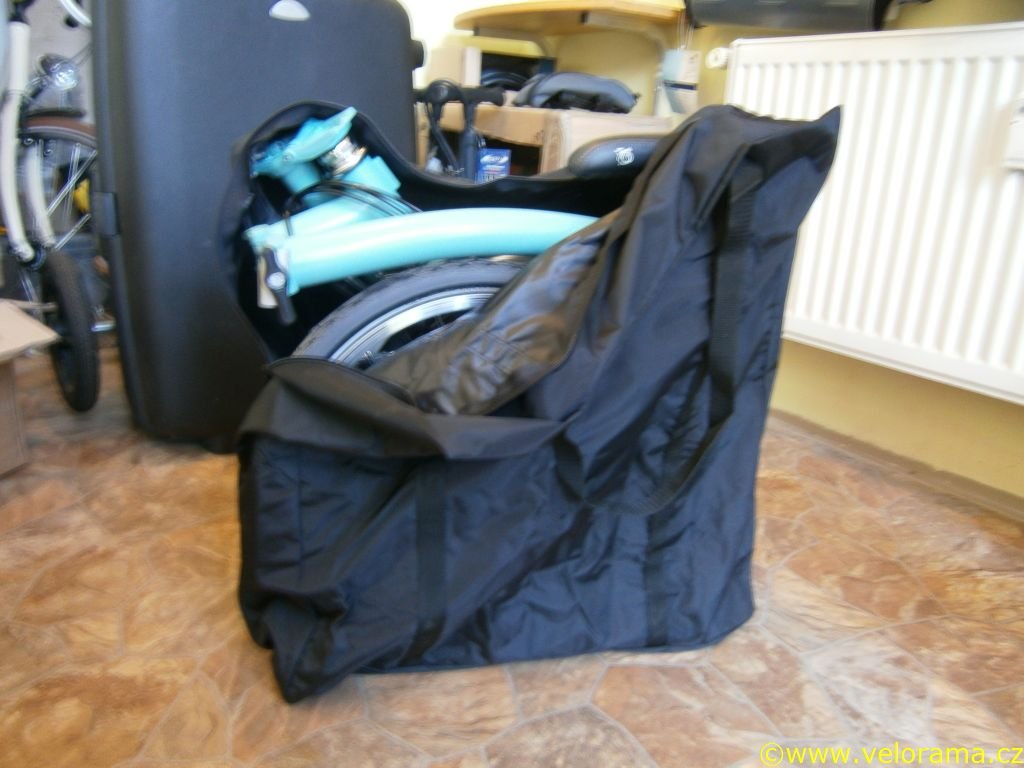 Kieszeń zapinana na zamek błyskawiczny z pełnym zamknięciem. Preferowana przez klientów przewożących rowery Brompton w samochodach, którzy chcą całkowicie odizolować rower od czystej zawartości bagażnika. Torba wykonana jest z grubej, wytrzymałej zamszowej skóry i wyposażona w pokrowiec dostosowany do ciągłej jazdy na rowerze pod siodełkiem. Dwa uchwyty do noszenia w ręku lub na ramieniu.Parametry dodatkowe