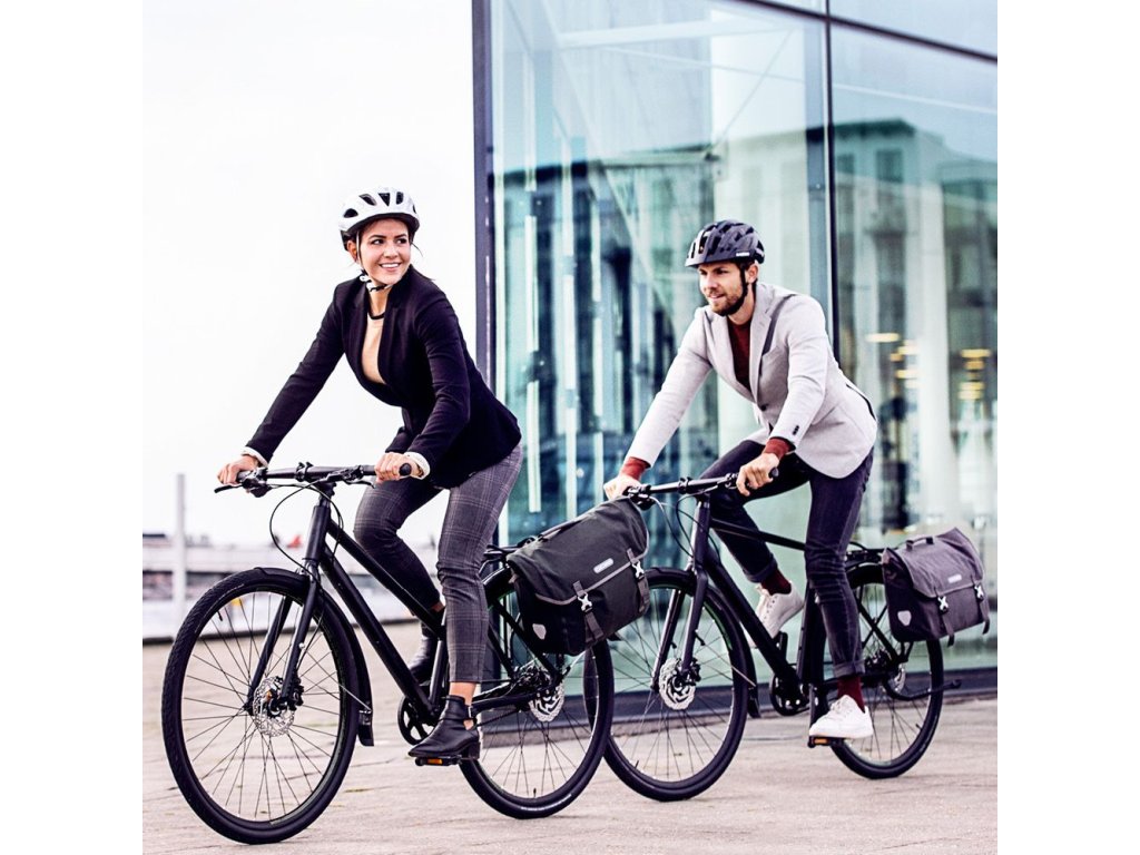 Nowoczesna i stylowa torba rowerowa dla osób, które jeżdżą do pracy, szkoły lub ulubionej kawiarni na rowerze z laptopem i innym wyposażeniem. Torba Commuter-Bag Two ma atrakcyjny, minimalistyczny, miejski design i jest idealna dla wszystkich, którzy preferują dojazd do pracy lub szkoły na rowerze. Wyrafinowany wygląd mieszanki Cordury pasuje zarówno do garnituru, jak i do codziennego noszenia. Metalowe klipsy umożliwiają szybki i wygodny dostęp do dobrze zorganizowanego wnętrza torby, które zawiera wyściełaną kieszeń na laptopa, przestronną główną przegrodę z uchwytami na długopisy i brelok do kluczy oraz specjalną kieszeń na tablet 8" lub 10". Dodatkowe funkcje: + Odpinany pasek na ramię z miękką podkładką z mikrofibry + Nie zawiera PVC + Odblaski boczne + Komora na laptopa: 27 cm x 40 cm x 3 cm / 15,7 cala x 1,2 cala System QL2.1: + do rur bagażnika rowerowego do 16 mm + obrotowy uchwyt umożliwia zamocowanie po obu stronach bagażnika rowerowegoParametry dodatkowe