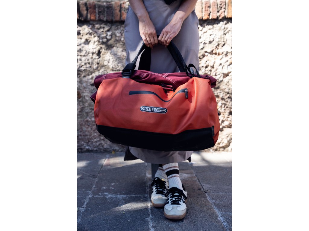 Ta niezwykle lekka, a jednocześnie wytrzymała torba podróżna niezawodnie chroni swoją zawartość przed deszczem, kurzem i zabrudzeniami, dzięki czemu idealnie nadaje się na outdoorowe przygody i podróże, ale także do wymagającego codziennego życia. Dzięki długiemu zamkowi błyskawicznemu ta praktyczna torba łatwo się otwiera i zapewnia optymalny dostęp do swojego wnętrza. Zamki błyskawiczne można zabezpieczyć klamrą i paskiem, które pomagają również ścisnąć torbę, aby uzyskać optymalny rozmiar pakunku. Dodatkowy pasek kompresyjny po wewnętrznej stronie zapewnia, że bagaż jest bezpiecznie przechowywany i pozostaje na swoim miejscu. Dzięki wyjmowanej przegródce wewnętrznej Duffle Lite oferuje elastyczne możliwości organizacji, a praktyczna przegródka na zamek błyskawiczny po zewnętrznej stronie umożliwia szybki dostęp do często potrzebnych przedmiotów. Uchwyty „daisy chain” na zewnątrz zapewniają dodatkowe punkty mocowania dodatkowego wyposażenia – idealne dla backpackerów i poszukiwaczy przygód, którzy potrzebują dodatkowej przestrzeni na akcesoria. Elastyczność jest najwyższym priorytetem w dobrze zaprojektowanej torbie Duffle Lite: można ją nosić jako torbę podróżną w ręku, a dzięki wygodnym i ergonomicznym paskom na ramię również jako plecak. Torba ORTLIEB Duffle Lite jest oczywiście produkowana w sposób zrównoważony w Niemczech.Parametry dodatkowe