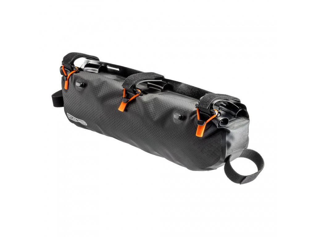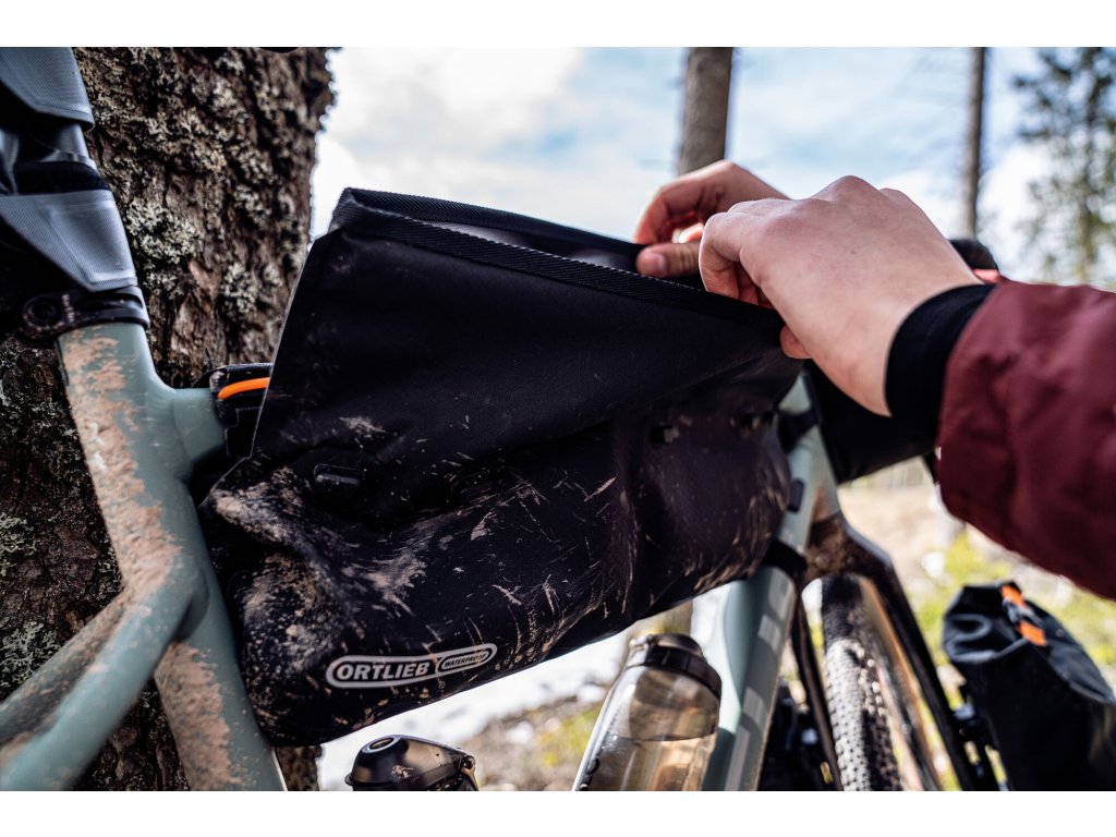 Torba rowerowa ORTLIEB Frame-Pack TopTube RC to sprytne rozwiązanie pozwalające wykorzystać przestrzeń w ramie roweru. Jest to świetna torba na ramę dla rowerów z pełnym zawieszeniem, które mają ograniczoną przestrzeń między rurami ramy. Dzięki pojemności 4 litrów oferuje wystarczająco dużo miejsca na takie rzeczy, jak słupki namiotu, narzędzia, jedzenie, a jednocześnie zapewnia dobre i przede wszystkim niskie położenie środka ciężkości roweru. Podczas bikepackingu nie musisz się martwić brodzeniem w rzekach lub ulewnymi deszczami. W tej nowej wersji RC wodoodporny zamek TIZIP został zastąpiony rolowanym zamknięciem z wystarczająco dużym otworem na cały sprzęt, regulowanymi paskami na rzepy i innym klejeniem szwów, dzięki czemu torba lepiej przylega do ramy roweru. Mocowana jest do ramy roweru za pomocą solidnych, wytrzymałych pasków z rzepami odblaskowe logo po obu stronach nadaje się również do rowerów karbonowychParametry dodatkowe