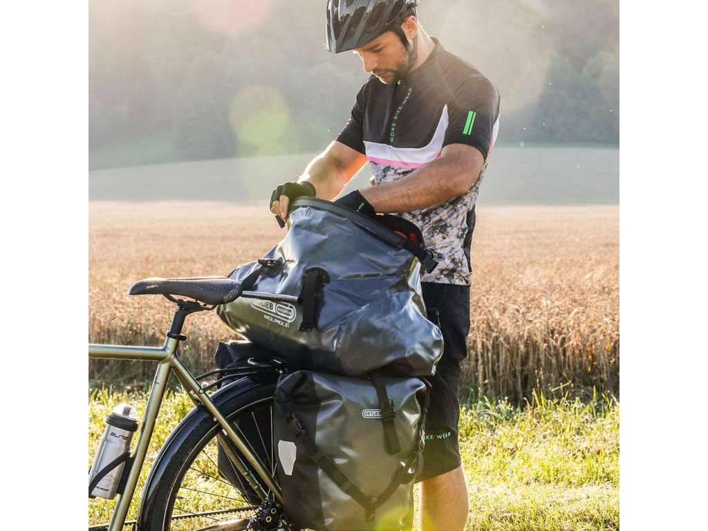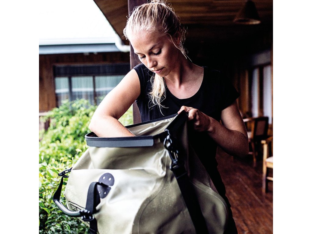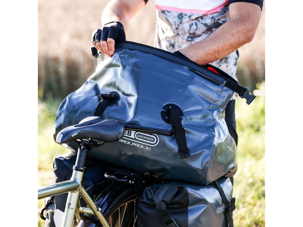 Wodoodporna torba na bagażnik rowerowy ORTLIEB Rack-Pack M - 31L Torba Ortlieb Rack-Pack w rozmiarze M powinna być używana głównie w połączeniu z bocznymi torbami Back-Roller na bagażnik rowerowy. Gumowana powierzchnia i rolowane zamknięcie są wodoodporne, dzięki czemu Twoje rzeczy zawsze pozostaną suche. Torba ma szeroki otwór ułatwiający obsługę. Można jej używać na rowerze, łodzi lub podczas wspinaczki. Dostępna w wielu kolorach i rozmiarach. Instrukcja montażu torby rowerowej Ortlieb Rack-PackParametry dodatkowe