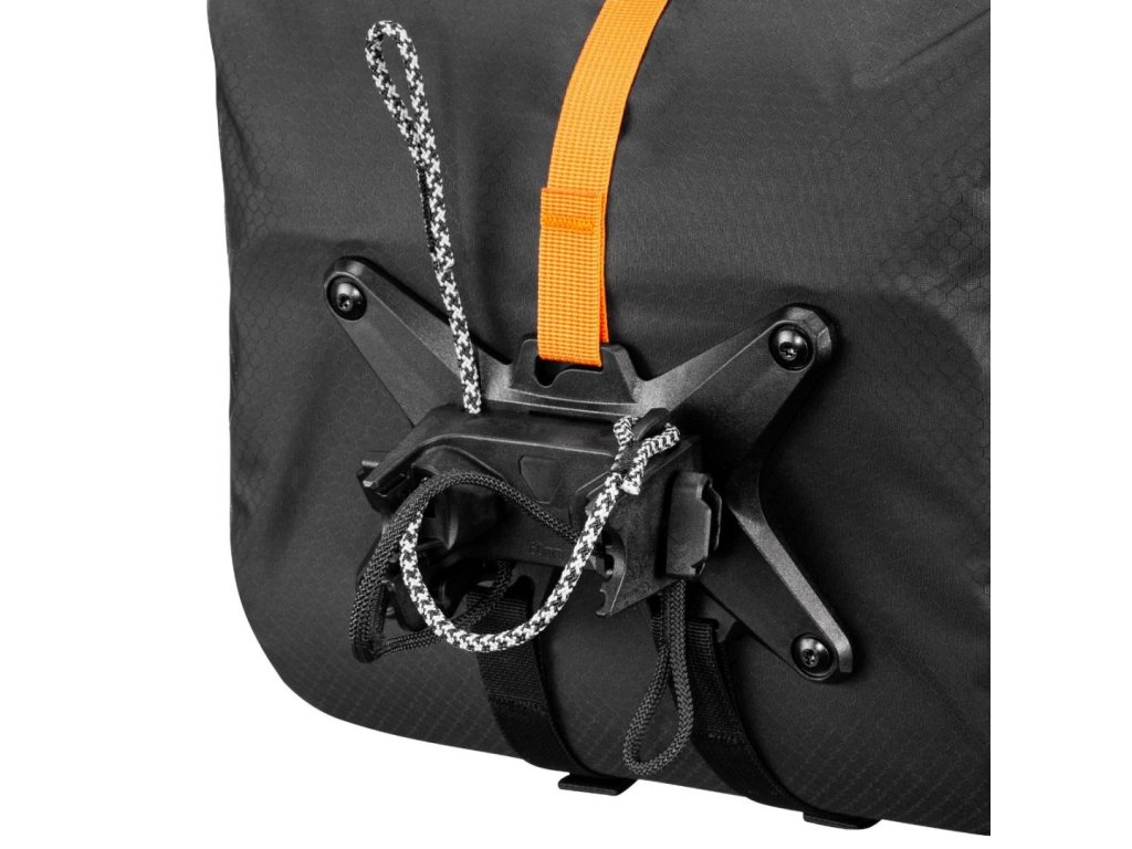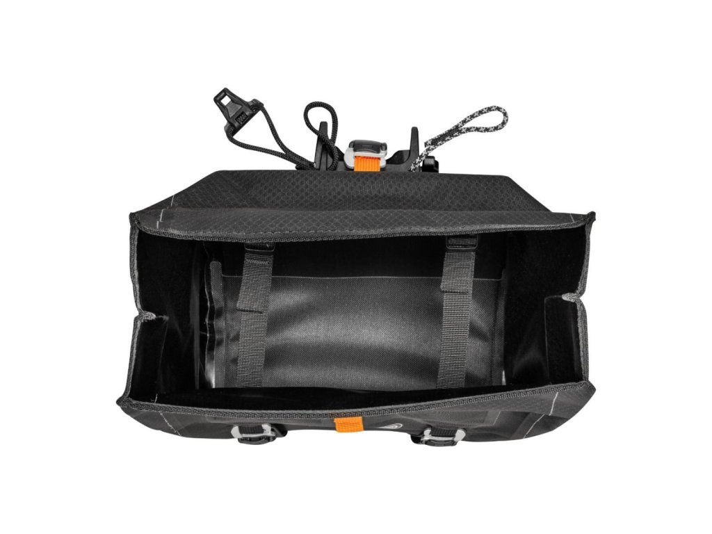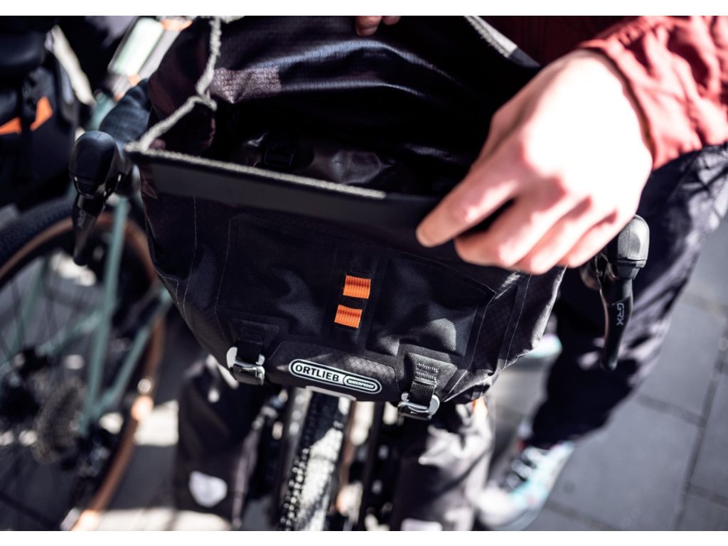 Bardzo praktyczna torba podręczna Szybko montowana torba rowerowa na kierownicę niemieckiej firmy Ortlieb Dzięki nowemu systemowi mocowania Bar-Lock wodoodporną torbę Handlebar-Pack QR można w mgnieniu oka przymocować do roweru, a następnie szybko i łatwo odłączyć i zabrać ze sobą po dotarciu do celu. Nowy system Bar-Lock z linką gwarantuje, że ta torba rowerowa nie przesunie się podczas jazdy nawet w trudnym terenie. Wszystkie Twoje rzeczy będą dobrze zabezpieczone wewnątrz za pomocą pasków kompresyjnych, a rolowana klamra osiąga odpowiednią wysokość. Z przodu znajdują się dwa haczyki z plastikowymi klamrami, które oferują dodatkowe miejsce do przechowywania. Plecak Handlebar-Pack QR z górnym wypełnieniem ma pojemność 11 litrów i waży tylko 530 gramów. Oprócz bikepackingu doskonale nadaje się również do dłuższych przejażdżek po szutrze, a dzięki szerokości 32 cm również do wyścigów. Zewnętrzne kieszenie boczne są praktyczne do przechowywania drobnych akcesoriów lub jedzenia, które trzeba mieć pod ręką podczas jazdy. Torba nie zawiera PVC, jest wykonana z odpornej na ścieranie tkaniny nylonowej i (jakżeby inaczej) wyprodukowana w Niemczech w sposób zrównoważony. Maksymalna nośność wynosi 5 kg. Aby jeszcze lepiej zorganizować zawartość torby, można ją uzupełnić dodatkową kieszenią Handlebar-Pack QR Inner, która ułatwia dostęp do gotówki, kart kredytowych lub telefonu.Parametry dodatkowe