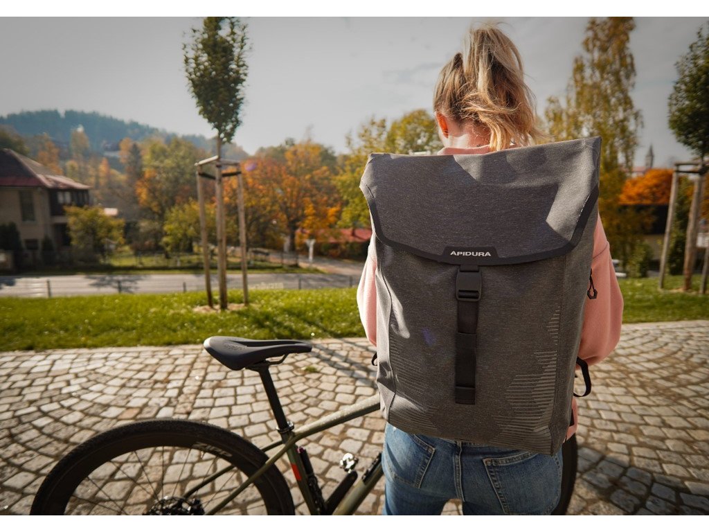 Designerski plecak miejski o pojemności 20 litrów jest ulepszoną i bardziej przestronną wersją popularnego plecaka Apidura, który został zaprojektowany specjalnie do poruszania się po mieście. Plecak ten łączy nowoczesny, stylowy design z funkcjonalnością, która idealnie nadaje się do jazdy na rowerze i codziennego użytku, zarówno na rowerze, jak i pieszo. Plecak jest wykonany z wysokiej jakości wodoodpornego materiału, który chroni Twoje rzeczy przed deszczem i niekorzystnymi warunkami pogodowymi. Dzięki tej odporności możesz mieć pewność, że zawartość plecaka pozostanie sucha i bezpieczna. Zamiast tradycyjnych szwów plecak wykorzystuje zgrzewane szwy, co oznacza jeszcze lepszą wodoodporność i odporność na warunki atmosferyczne. Technologia ta minimalizuje ryzyko przedostania się wody i zapewnia wytrzymałość plecaka. Cechy: Plecak jest odporny na uszkodzenia spowodowane zużyciem lub uszkodzeniami: Duża kieszeń na laptopa wewnątrz, mała kieszeń na dokumenty zapinana na zamek błyskawiczny Odblaskowe detale dla lepszej widoczności w ciemności Miejsce na przymocowanie latarki Nowe zapięcie na klamręParametry dodatkowe