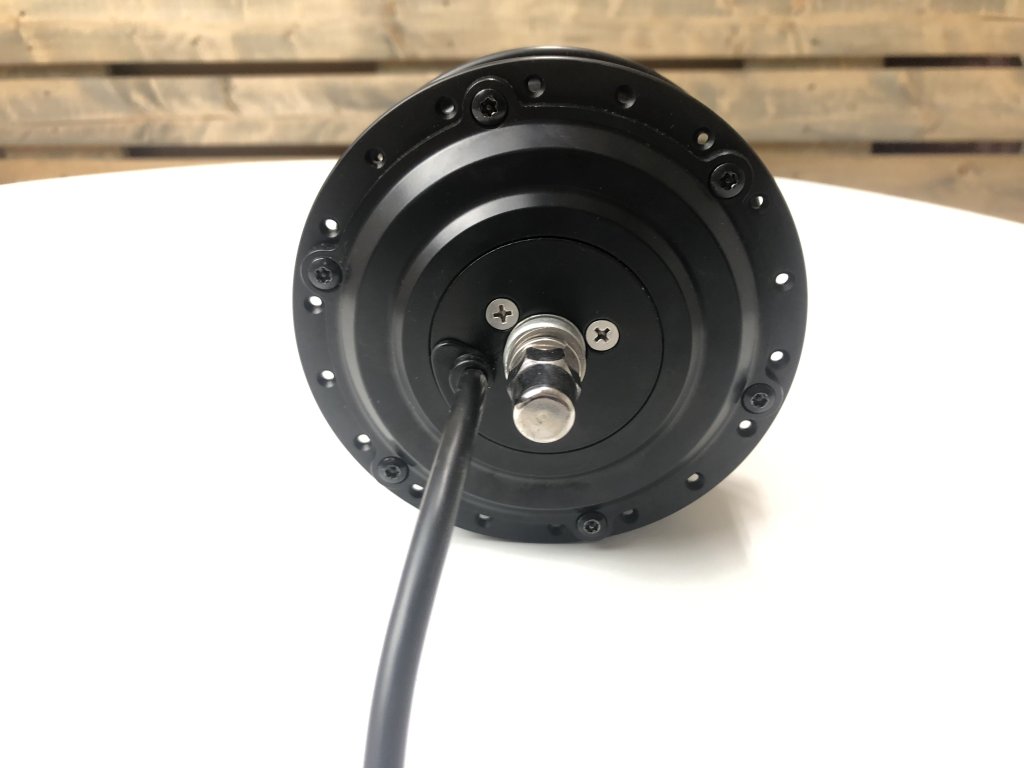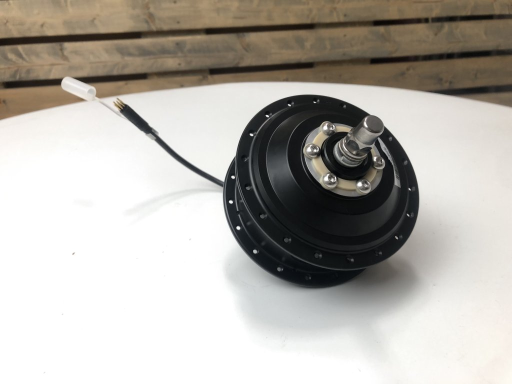 Silnik można łączyć również z hamulcami tarczowymi, jest wyposażony w kołnierz do rotora hamulca tarczowego. Bezszczotkowy silnik jest zasilany prądem przemiennym, a dzięki regulacji za pomocą sond Halla charakteryzuje się cichą i płynną pracą (typ cichy). Silnik jest podłączony do zasilania za pomocą 9-pinowego złącza. Dostępny jest w kolorze czarnym. Jego moc znamionowa wynosi 250-310 W / 36 V. Silnik jest produkowany przez renomowaną markę Bafang lub 8FUN, która zasłużyła sobie na swoją renomę dzięki niskiemu zużyciu energii przy zachowaniu wysokiej mocy. Dzięki temu można pokonać więcej wzniesień i przejechać nieco więcej kilometrów niż w przypadku silników konkurencyjnych.Parametry dodatkowe