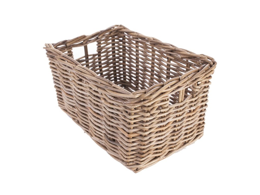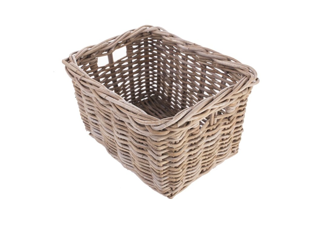 Rattanowy kosz rowerowy Konstrukcja kosza z rustykalnego rattanu gwarantuje jego wystarczającą wytrzymałość. Montuje się go na przednim bagażniku roweru retro lub miejskiego, dzięki czemu zawsze masz przegląd wszystkich rzeczy, które w nim przechowujesz. Dzięki pojemności 34 litrów pomieści naprawdę wszystko, więc nie musisz iść na kompromisy w kwestii tego, co zabierzesz ze sobą. Kosz jest również dostępny w mniejszej wersji o pojemności 16 litrów.Parametry dodatkowe