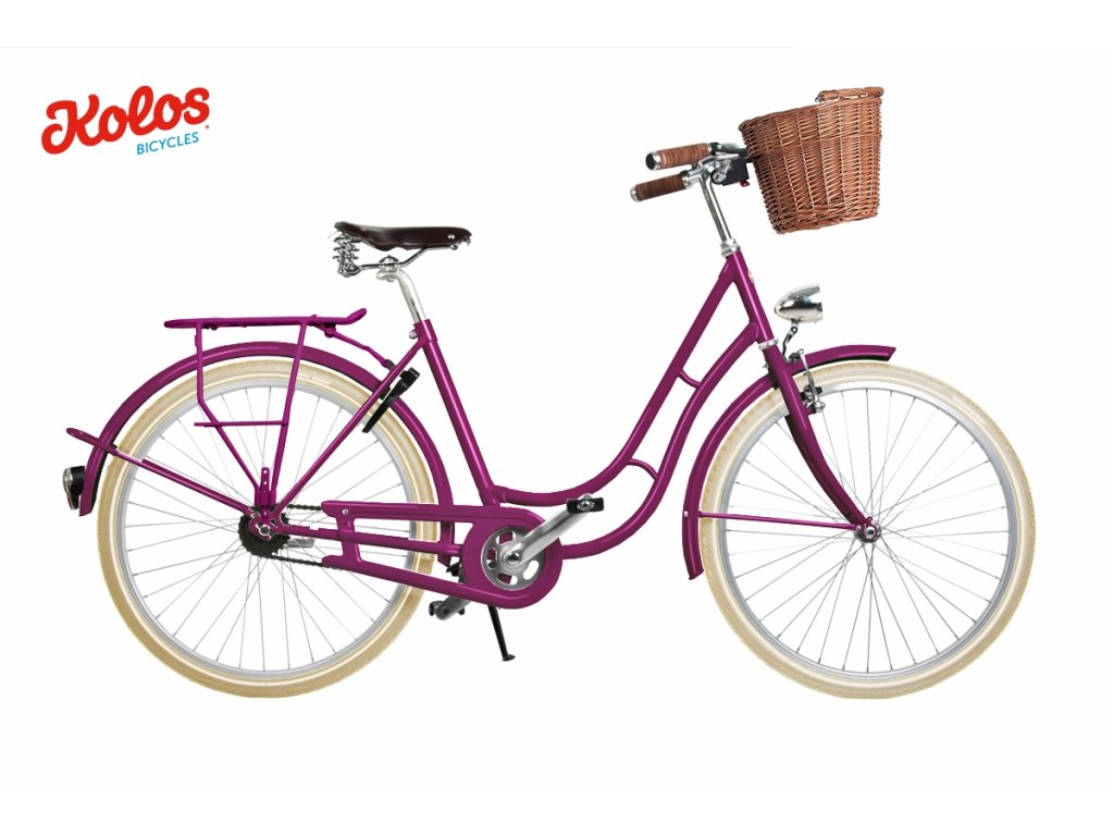| Dodatkowe wyposażenie: | Osłona łańcucha, tylny bagażnik, błotniki, stojak, dzwonek, skórzane siodło i uchwyty Kolos, stojak, zamek ramy, wiklinowy koszyk Klickfix |