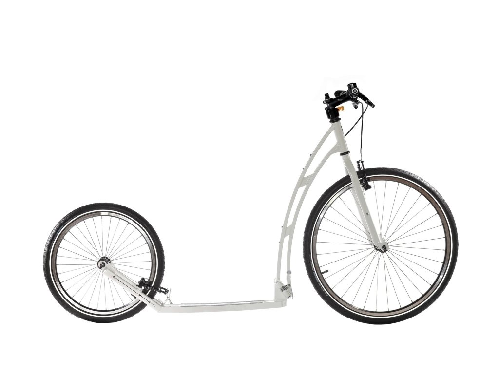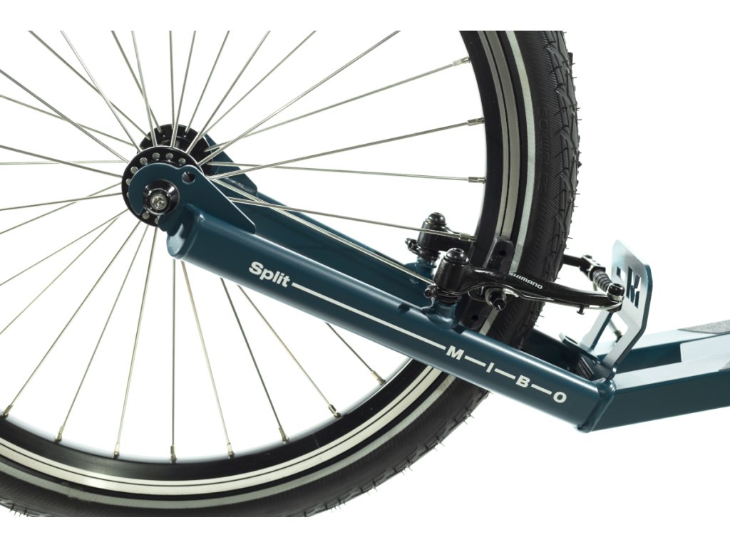 Składana hulajnoga Mibo GT na kołach 26"/20" z łatwością zmieści się w bagażniku samochodu. Dzięki szybkozłączkom można obrócić kierownicę i złożyć hulajnogę na płasko, aby nie przeszkadzała w korytarzu. Hulajnoga posiada dzwonek. Hulajnoga posiada w przednim widelcu wkładki do zamocowania bagażnika. Koła są wyposażone w opony Schwalbe Marathon Racer – wytrzymałe i szybkie opony firmy Schwalbe. Nośność 150 kg. Gwarancja 5 lat na ramę, 2 lata na pozostałe komponenty. Hulajnoga jest dostarczana bez podpórki.