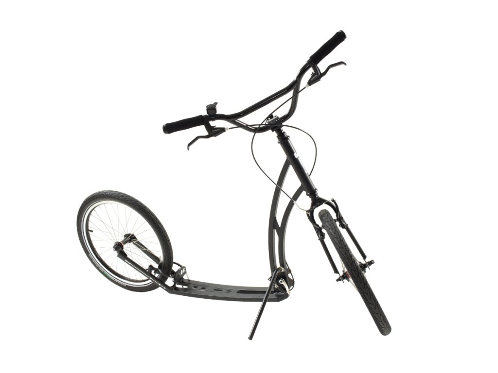 Królewska hulajnoga dla dorosłych Szybka, bezpieczna i stabilna nawet w łatwym terenie. Przeznaczona dla dzieci od 12 lat i dorosłych do 200 cm wzrostu. Rozmiar kół 20/20". Bardzo kompaktowy model, idealny do częstych przemieszczania się środkami transportu. Opatentowany mechanizm składania. Wymiary transportowe: 133 x 60 x 17 cm. Ręcznie wykonana stalowa rama zapewnia doskonałe właściwości jezdne i doskonałe przenoszenie siły odbicia. Hulajnoga została wykonana z wielką starannością, a wszystko jest dopracowane w najdrobniejszych szczegółach. Solidne dwuścienne felgi i proste wzmocnienia gwarantują wysokiej jakości przenoszenie sił na drogę bez zbędnych strat. Oczywistością są wysokiej jakości łożyska. Wysoce skuteczne hamulce Shimano są powszechnie stosowane w kolarstwie. Niska wysokość podnóżka gwarantuje komfort jazdy. Opatentowany mechanizm składania sprawia, że złożenie i rozłożenie hulajnogi zajmuje kilka sekund. Przednie i tylne 20-calowe koła zapewniają równomierne rozłożenie sił hamowania, dzięki czemu hulajnoga nie ma tendencji do „wystrzeliwania” do tyłu. Hulajnoga jest dostarczana bez podpórki.