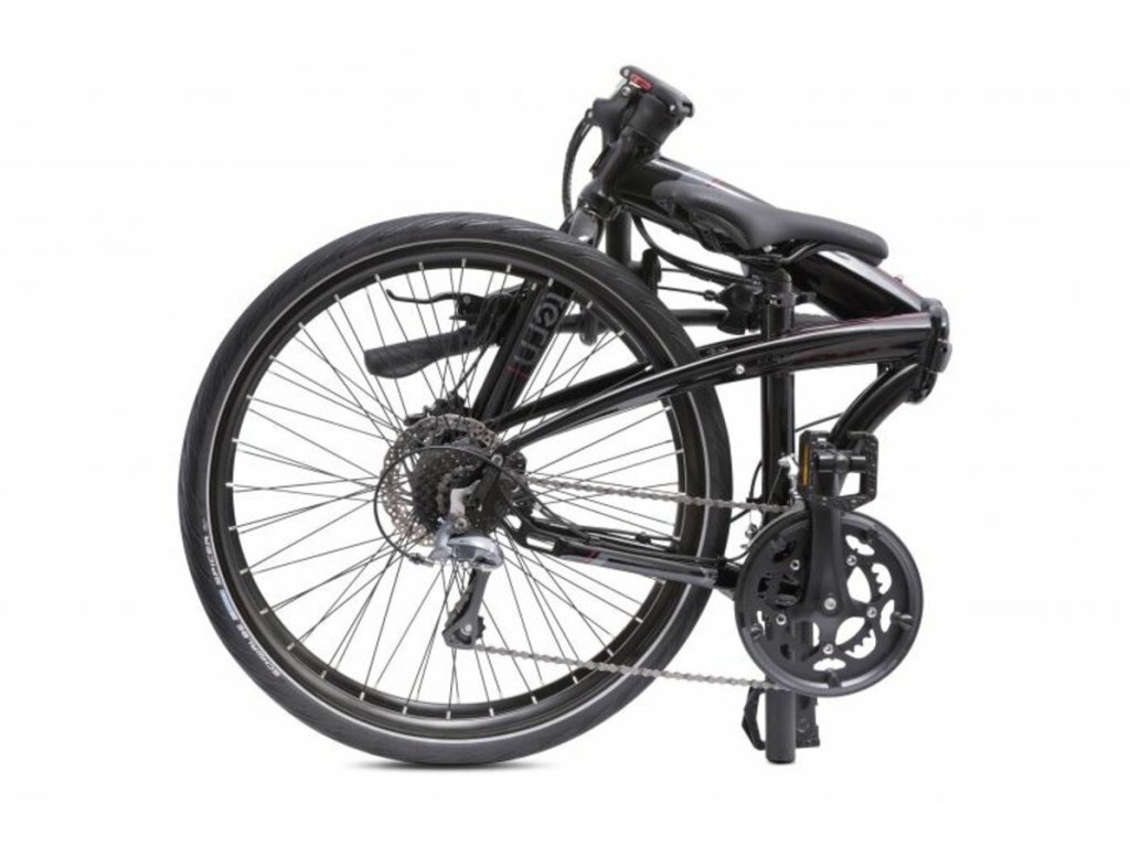 Zwinność w mieście i na trasach Składany rower TERN Eclipse D16 Tern Eclipse to klasyczny rower składany, ale dzięki 26-calowym kołom i 16 biegom oferuje znacznie więcej. Możesz na nim jeździć jak szalony lub po prostu podziwiać krajobrazy – to rower, który pozwoli Ci cieszyć się jazdą w pełni. O wygodną jazdę dbają 26-calowe koła z oponami Schwalbe odpornymi na przebicie, dzięki czemu nic nie zaskoczy Cię na drodze. Rower jest również wyposażony w wysokiej jakości przerzutkę Shimano z 2× 8 biegami i hydrauliczne hamulce tarczowe tego samego producenta. Dzięki temu wyposażeniu możesz wybrać się na rowerze nawet w trudny teren. Rower Tern Eclipse D16 można łatwo złożyć w 10 sekund dzięki prostemu systemowi dźwigni w środkowej części ramy i na kierownicy. Ten piękny rower jest również wyposażony w regulowany mostek Andros, który zapewnia idealną pozycję siodełka. Jeśli szukasz roweru do miasta i łatwego terenu, który można łatwo złożyć i wrzucić do bagażnika lub przechowywać w małym mieszkaniu, to znalazłeś swojego zwycięzcę. Tern Eclipse łączy w sobie to, co najlepsze w rowerach składanych i miejskich. To po prostu bohater.Parametry dodatkowe