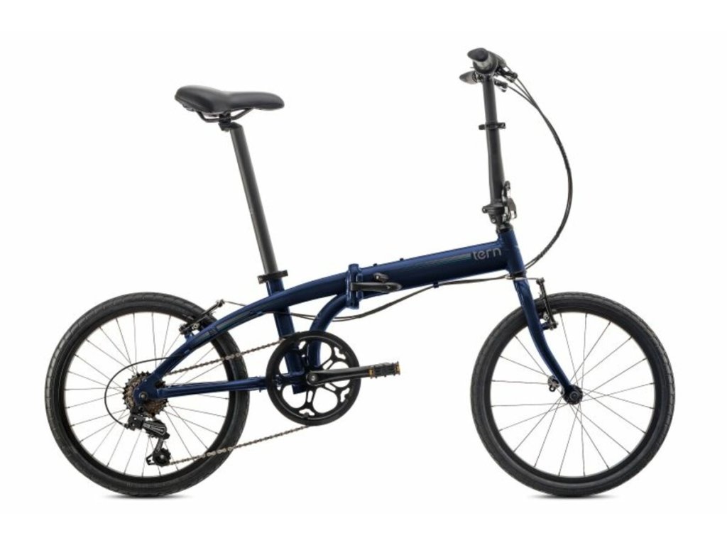 Składany rower Tern Link B7 w kolorze ciemnoniebieskim i szarym