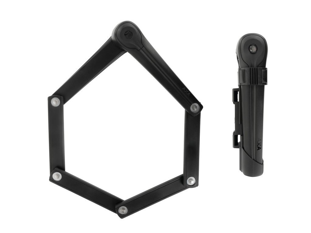 Zamek AXA Fold to praktyczny zamek, który jest dostarczany z uchwytem, który można łatwo zamontować na koszu na butelki lub przymocować do ramy za pomocą dwóch dołączonych pasków montażowych. Dzięki rewolucyjnemu mechanizmowi zamykającemu zamek mocno trzyma się uchwytu i nie grzechocze podczas jazdy, bez konieczności wyjmowania go. Dzięki elastycznym przegubom jest łatwy w obsłudze, a dzięki funkcji click-in wystarczy wsunąć klips w wycięcie z boku, gdzie zamek z wyraźnym kliknięciem się zablokuje. Po zamknięciu można wyjąć klucz, a rower jest zabezpieczony. Miękka osłona zamka chroni ramę roweru przed zarysowaniami. Cechy: Konstrukcja uchwytu pasuje do każdego roweru. Gumowana powierzchnia chroni rower. Wkładka jest podwójnie chroniona przed kurzem i zanieczyszczeniami. Praktyczny zamek cylindryczny zatrzaskowy. Międzynarodowa usługa kluczy. Długość w stanie złożonym 20 cm Szerokość w stanie złożonym 6 cm Rozmiar ramienia 25 x 7 mmParametry dodatkowe