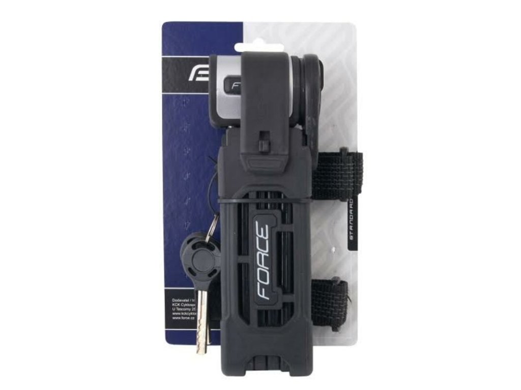 Zabezpieczenie przed złodziejami Zamek rowerowy Force Fold Zamek zabezpieczający Force Fold składa się z jednolitych stalowych ogniw. Jest bardzo odporny na uszkodzenia mechaniczne i pokryty plastikiem, który zapobiega zarysowaniu lakieru roweru. Składany zamek firmy Force doskonale spełnia wymagania dotyczące stosunku ceny do jakości i jest dostarczany z praktycznym uchwytem do roweru oraz dwoma kluczami. Długość: 80 cm, 6 ogniw Wymiary 1 ogniwa: 22,8 mm x 7,2 mm x 138,5 m Zamek: na klucz, 2 klucze Waga: 1 kg.Parametry dodatkowe