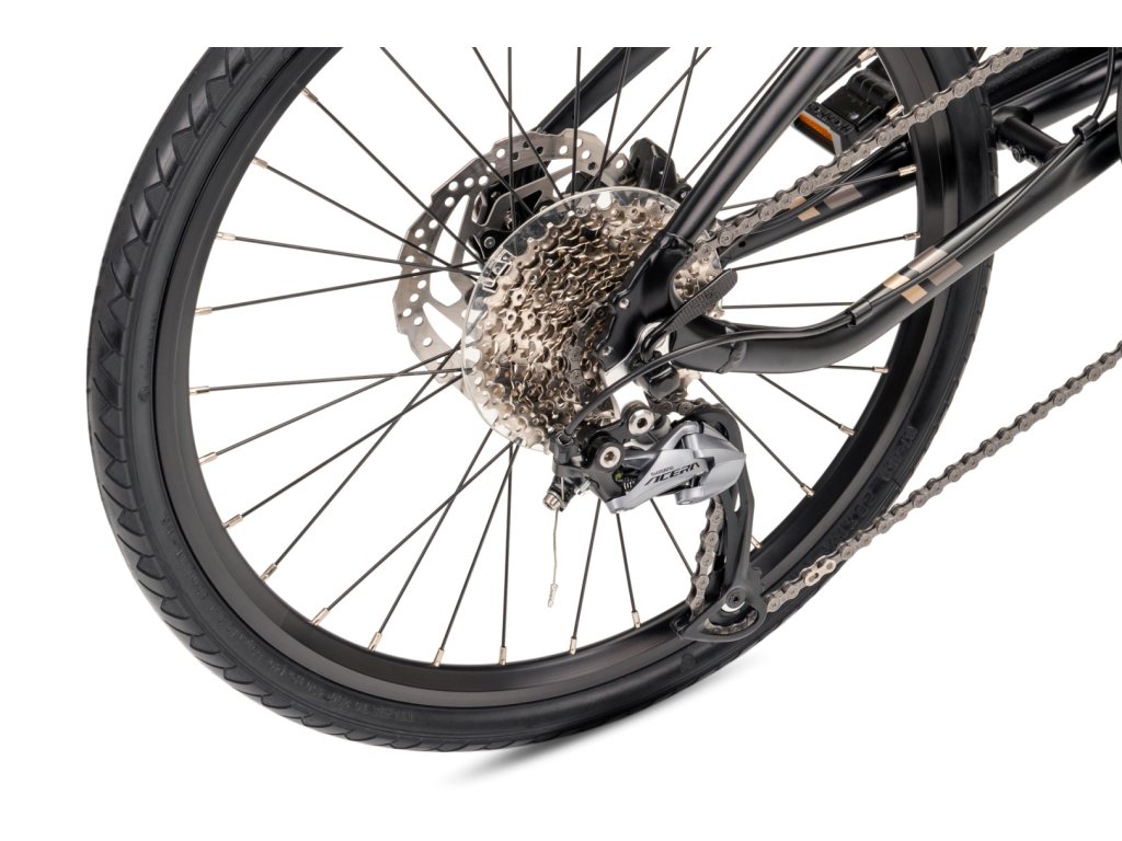 Lekka, urocza i szybka elegancja Składany rower Tern Verge D9 łączy w sobie elegancję, lekkość i zwinność jazdy. Składane rowery są wygodnym środkiem transportu i rekreacyjnym sprzętem sportowym. Ich zaletą jest więc doskonała kompatybilność, jeśli masz mało miejsca w domu lub w pracy. Wielu użytkowników korzysta ze składanego roweru w transporcie kombinowanym, gdy część trasy pokonują środkami transportu publicznego, samochodem lub pociągiem, a część rowerem. W przypadku składanego roweru Tern Verge D9 jest to rower sportowy, który jednak nie gubi się w miejskim ruchu ulicznym. Ma 9 biegów, dzięki czemu z łatwością pokonuje nawet strome wzniesienia i umożliwia szybką jazdę po płaskim terenie lub z góry. Verge D9 ma 22-calowe koła wyposażone w węższe, gładkie opony 37-451, dzięki czemu mają minimalny opór toczenia i pozwalają dosłownie pędzić z wiatrem. Rower jest zbudowany na eleganckiej, hydroformowanej ramie aluminiowej z wyraźną innowacją, geometrią T-Tuned, która zapewnia zwiększoną stabilność. Waga tego składanego roweru wynosi bardzo przyjemne 12,8 kg, a mimo to bez problemu uniesie rowerzystów o wzroście od 142 do 190 cm i wadze do 105 kg. Za hamowanie odpowiada para hydraulicznych hamulców tarczowych Shimano. Wyższy komfort jazdy zapewnia 9-biegowa przerzutka Shimano Acera Shadow, regulowany mostek Syntace VRO, ergonomiczne uchwyty Velo i siodełko Tern Porter. Rower można złożyć do rozmiarów 44 x 80 x 74 cm w ciągu 10 sekund. Pakiet utrzymuje się razem dzięki systemowi magnetycznemu Magnetix 2.0. Chociaż rower na pierwszy rzut oka wygląda dość surowo, oferuje najwyższą jakość, a jeśli to dla Ciebie za mało, można go wyposażyć w tylny bagażnik, błotniki i inne akcesoria.Parametry dodatkowe