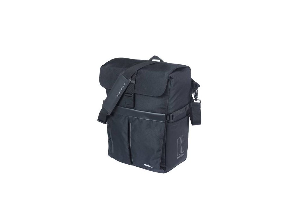 Basil Move to idealny wybór dla wszystkich, którzy szukają praktycznej i sportowej torby na rower, a także do codziennego noszenia na ramieniu. Doskonale sprawdzi się podczas codziennych dojazdów do pracy, a także podczas weekendowych wycieczek. Dzięki pojemności 15 litrów oferuje wystarczającą ilość miejsca, w tym wyściełaną przegrodę na laptopa, elastyczne kieszenie boczne i kilka kieszeni zapinanych na zamek błyskawiczny, które pozwalają na uporządkowane przechowywanie drobiazgów. Z przodu znajduje się regulowany uchwyt na kask, dzięki czemu można go wygodnie przenosić, nie zajmując miejsca wewnątrz torby. Torba jest wykonana z wodoodpornego poliestru pochodzącego z recyklingu, a w zestawie znajduje się również pokrowiec przeciwdeszczowy, który niezawodnie ochroni Twoje rzeczy nawet podczas niespodziewanego deszczu. Odpinany pasek na ramię umożliwia łatwe przenoszenie torby poza rowerem, a elementy odblaskowe zwiększają Twoją widoczność i bezpieczeństwo w ciemności. Dzięki sprytnemu systemowi MIK Hooks mocowanie torby do bagażnika jest szybkie i nie wymaga wysiłku. Haczyki umożliwiają łatwe mocowanie i odłączanie torby w ciągu kilku sekund, bez ryzyka uszkodzenia bagażnika. Zapewniają one maksymalną elastyczność podczas codziennego użytkowania. Cechy: torba rowerowa haczyki MIK wodoodporna wodoodporne zapięcie składane wyściełana przegródka na tablet/laptop przegródki wewnętrzne kieszenie zapinane na zamek błyskawiczny pasek na ramię wodoodporna osłona przeciwdeszczowa dodatkowa przegródka na kask elementy odblaskoweParametry dodatkowe