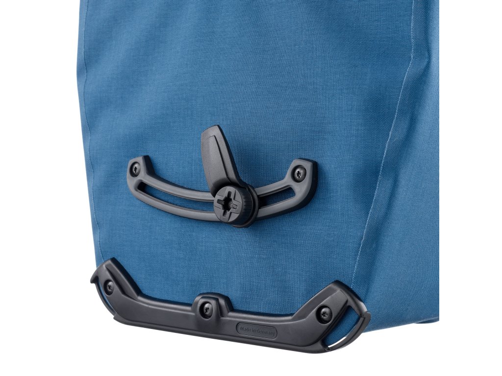 Nowa torba rowerowa Ortlieb opiera się na sprawdzonej podstawie Ortlieb Back-Roller Plus to nie tylko zwykła torba na tył roweru lub bagażnik do e-roweru. Jest to oryginalny, starannie przeprojektowany i ulepszony produkt, który w pełni zaspokoi wszystkie Twoje potrzeby. Jest wykonana z wodoodpornego i wytrzymałego materiału Cordura o eleganckim wyglądzie, który zapewnia ochronę nie tylko przed wilgocią, ale także przed kurzem i brudem. Wodoodporna zewnętrzna kieszeń z rolowanym zamknięciem pozwala przechowywać mniejsze przedmioty w suchości i bezpieczeństwie, zapewniając jednocześnie łatwy i szybki dostęp do nich. Główna komora torby rowerowej Ortlieb posiada również rolowane wodoodporne zamknięcie oraz wewnętrzny organizer, który ułatwia uporządkowanie mniejszych przedmiotów. Kiedy nie jesteś na rowerze, torbę Back-Roller Plus można wygodnie przenosić dzięki paskowi na ramię. Dzięki regulowanemu systemowi montażowemu Quick-Lock (QL.2) tę wytrzymałą tylną torbę można łatwo przymocować do roweru lub szybko zdjąć. Torba mocowana jest z boku bagażnika rowerowego i posiada po bokach elementy odblaskowe, dzięki którym będziesz widoczny nawet w złych warunkach oświetleniowych. Ten ekologiczny i wytworzony w sposób zrównoważony produkt z Niemiec sprawdzi się zarówno podczas dni roboczych, jak i dłuższych wycieczek rowerowych. Podana cena dotyczy jednej torby.Parametry dodatkowe