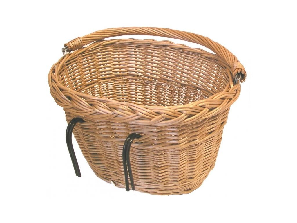 Luksusowy koszyk retro z wikliny na kierownicę Ręcznie wykonany Wiklinowy uchwyt jest częścią koszyka Mocowanie za pomocą haczyków do kierownicy – haczyki są częścią koszykaParametry dodatkowe
